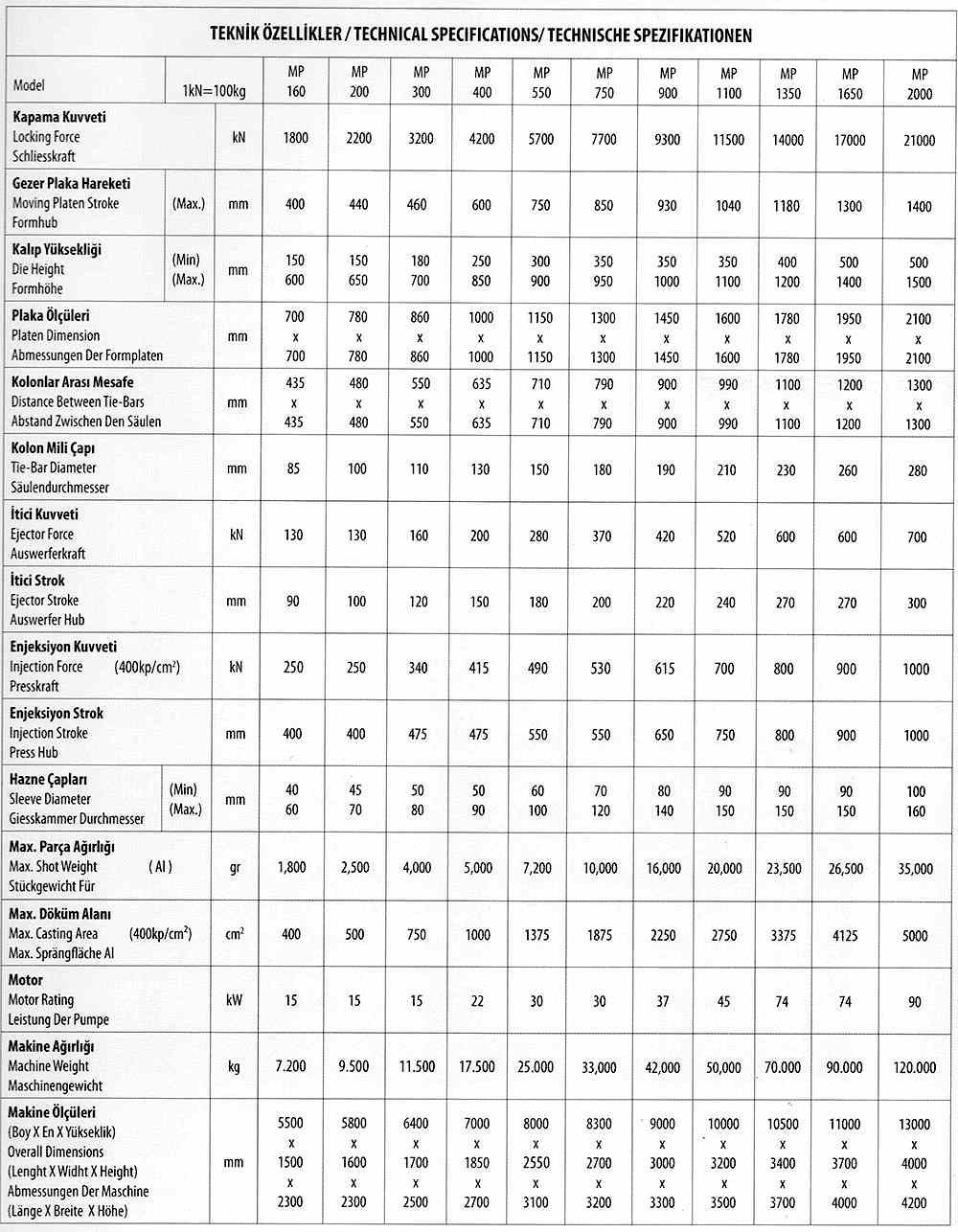 Üstün teknolojisi ile 160 Ton ile 2000 Tona kadar Alüminyum, Zamak, Sarı ve Magnezyum dökümü yapabilen Soğuk Kamaralı Metal Enjeksiyon Makineleri İmalatı yapmaktayız.