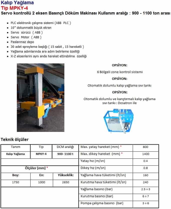 900-1100 Ton Arası Makineler İçin Kalıp Yağlama
