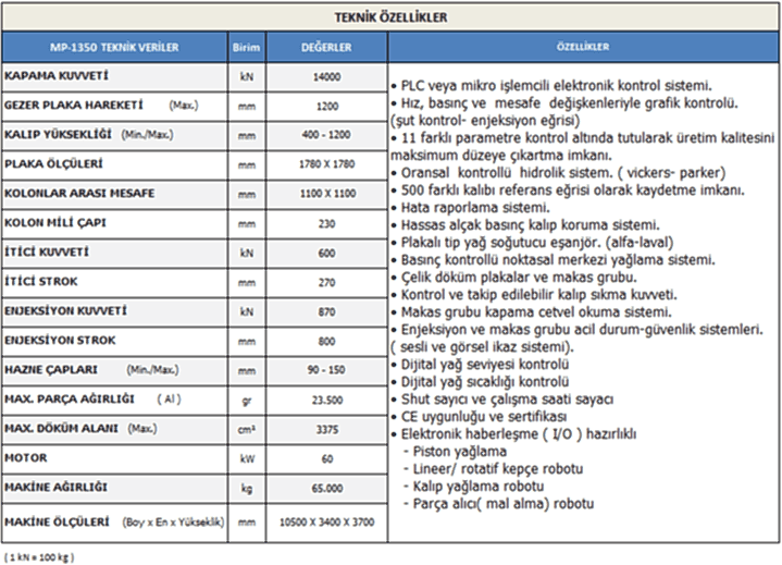 MP-1350 TON METAL ENJEKSİYON PRESİMetal Enjeksiyon Makine ÇeşitlerimizMP-160 TON METAL ENJEKSİYON PRESİMP-200 TON METAL ENJEKSİYON PRESİMP-300 TON METAL ENJEKSİYON PRESİMP-400 TON METAL ENJEKSİYON PRESİMP-550 TON METAL ENJEKSİYON PRESİMP-750 TON METAL ENJEKSİYON PRESİMP-900 TON METAL ENJEKSİYON PRESİMP-1100 TON METAL ENJEKSİYON PRESİMP-1350 TON METAL ENJEKSİYON PRESİMP-1650 TON METAL ENJEKSİYON PRESİMP-2000 TON METAL ENJEKSİYON PRESİKALIP BAĞLANTI ŞEMASI GÖRÜNTÜ VE BOYUTLARI