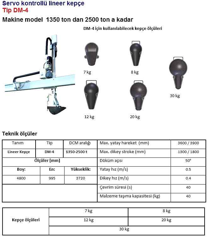 750-1100 Ton Arası Makineler İçin Lineer Kepçe