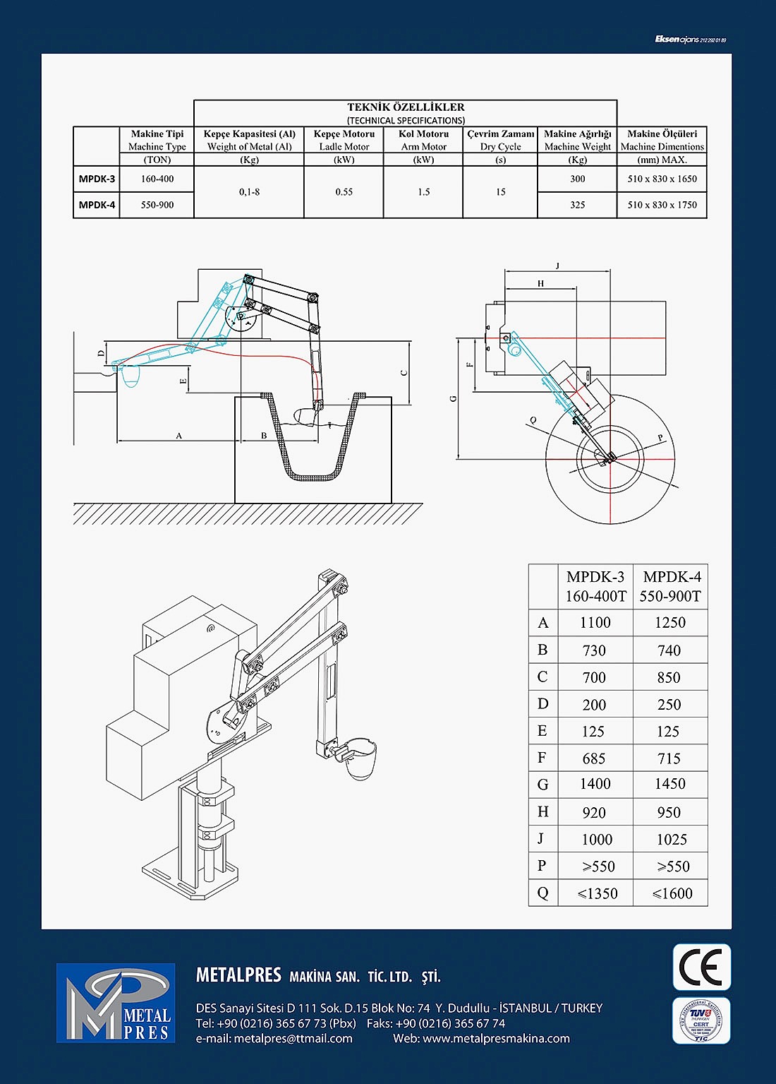 750-1100 Ton Arası Makineler İçin Lineer Kepçe