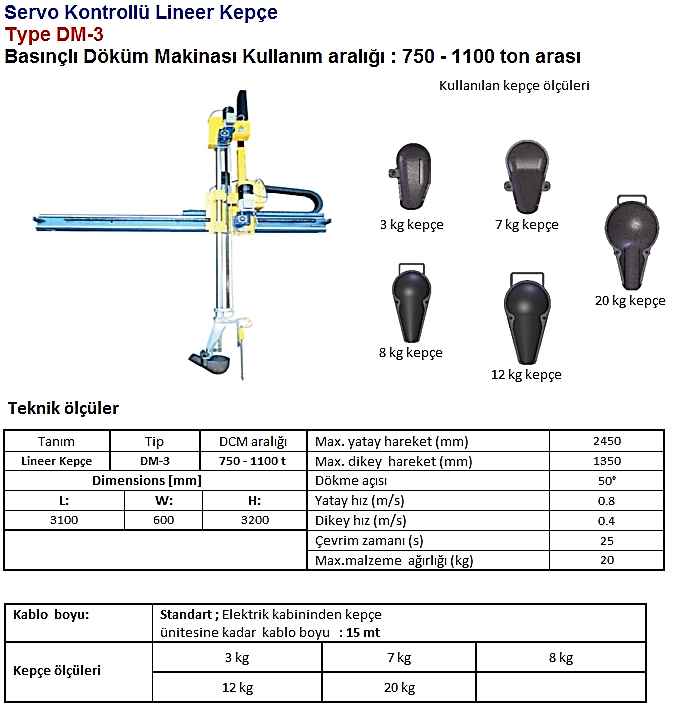 750-1100 Ton Arası Makineler İçin Lineer Kepçe