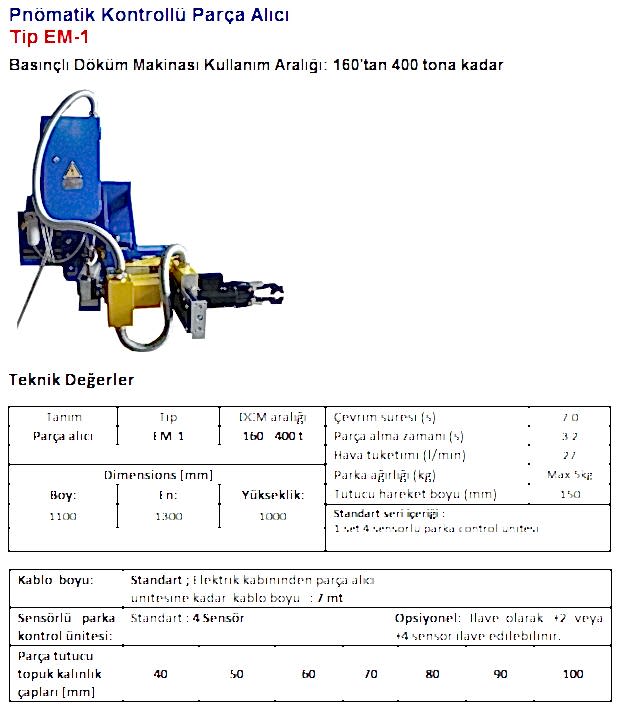 160-400 Ton Arası Makinalar İçin Parça Alma Robotu
